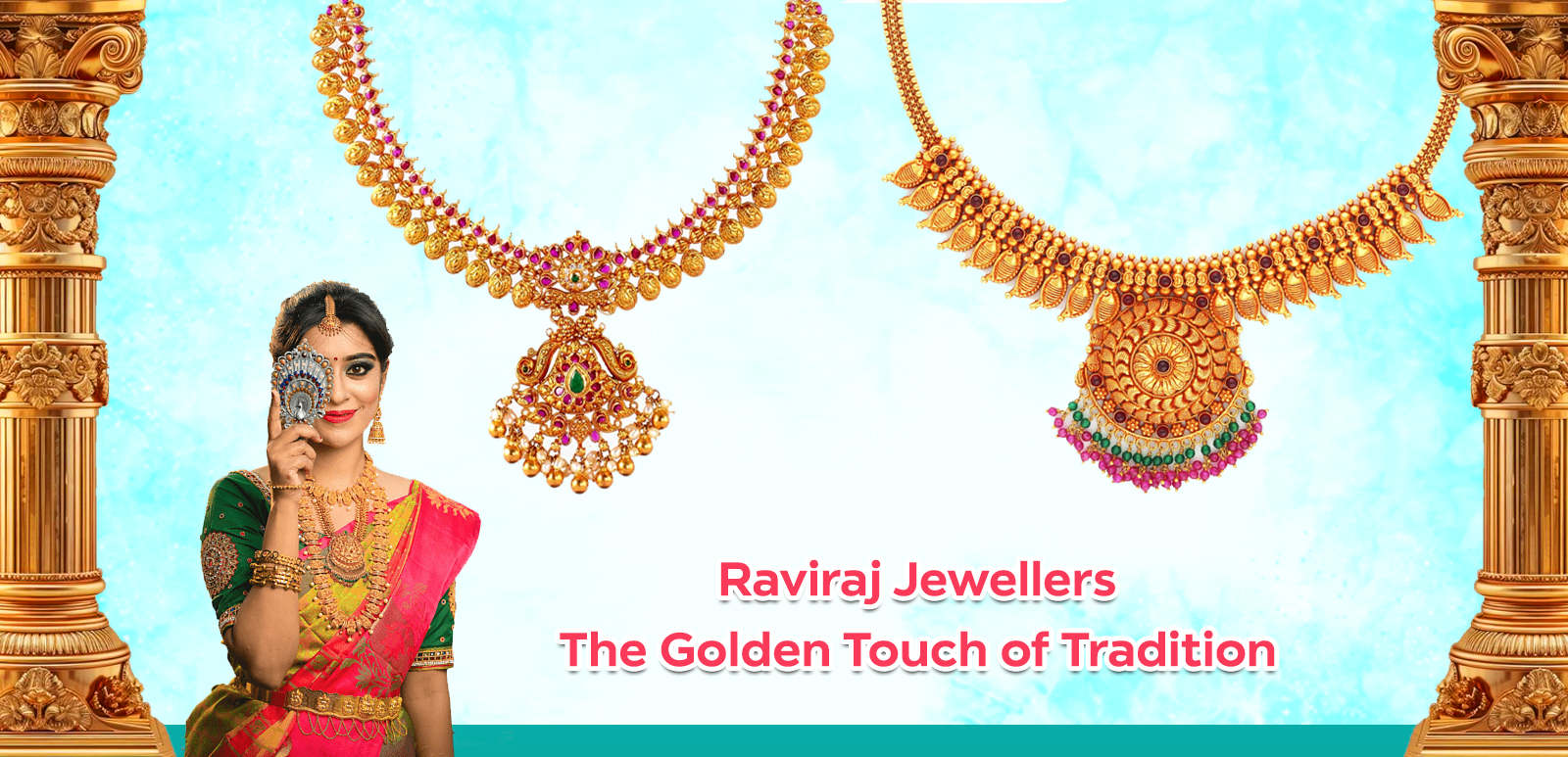 Our jewellery is handcrafted with precision and passion, turning every moment into a golden memory.Experience the warmth of tradition with Raviraj Jewellers.